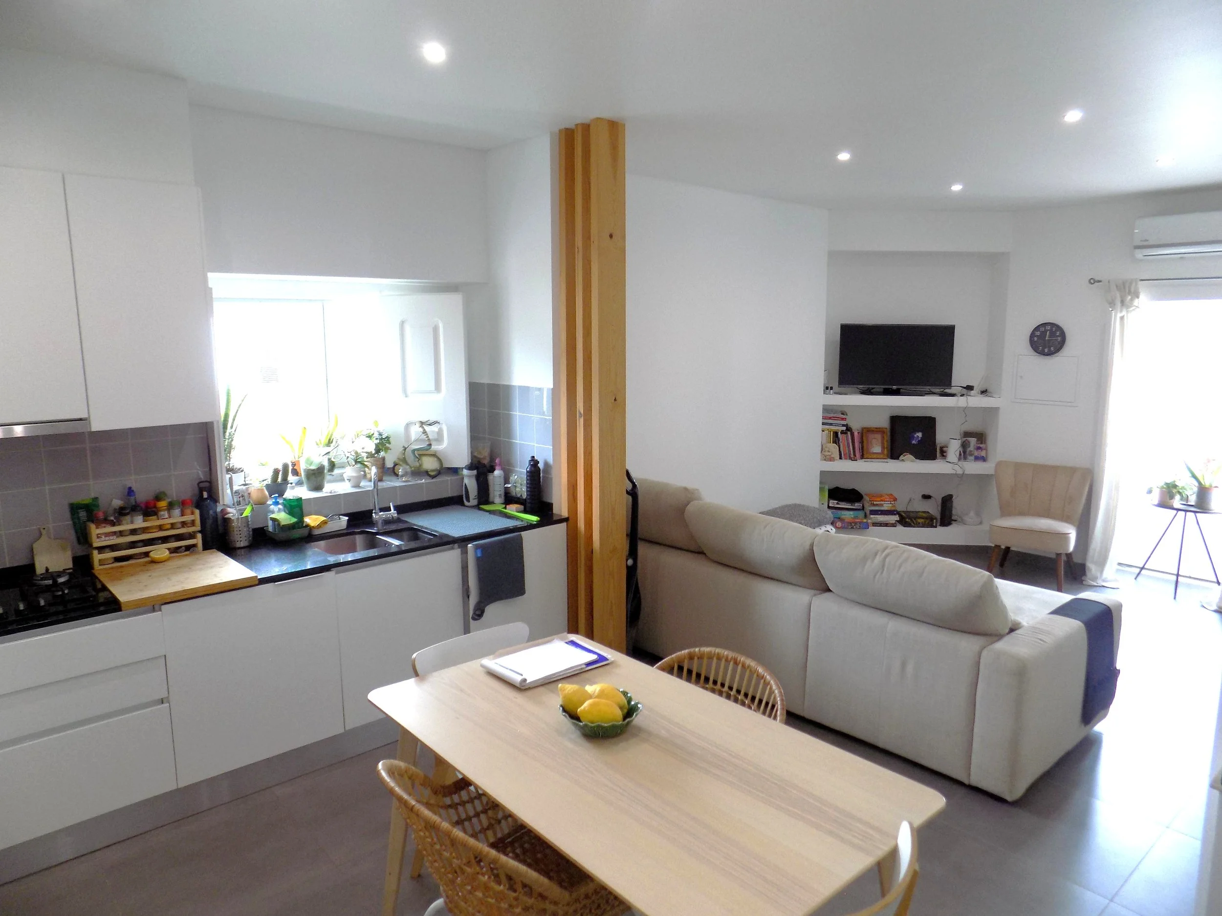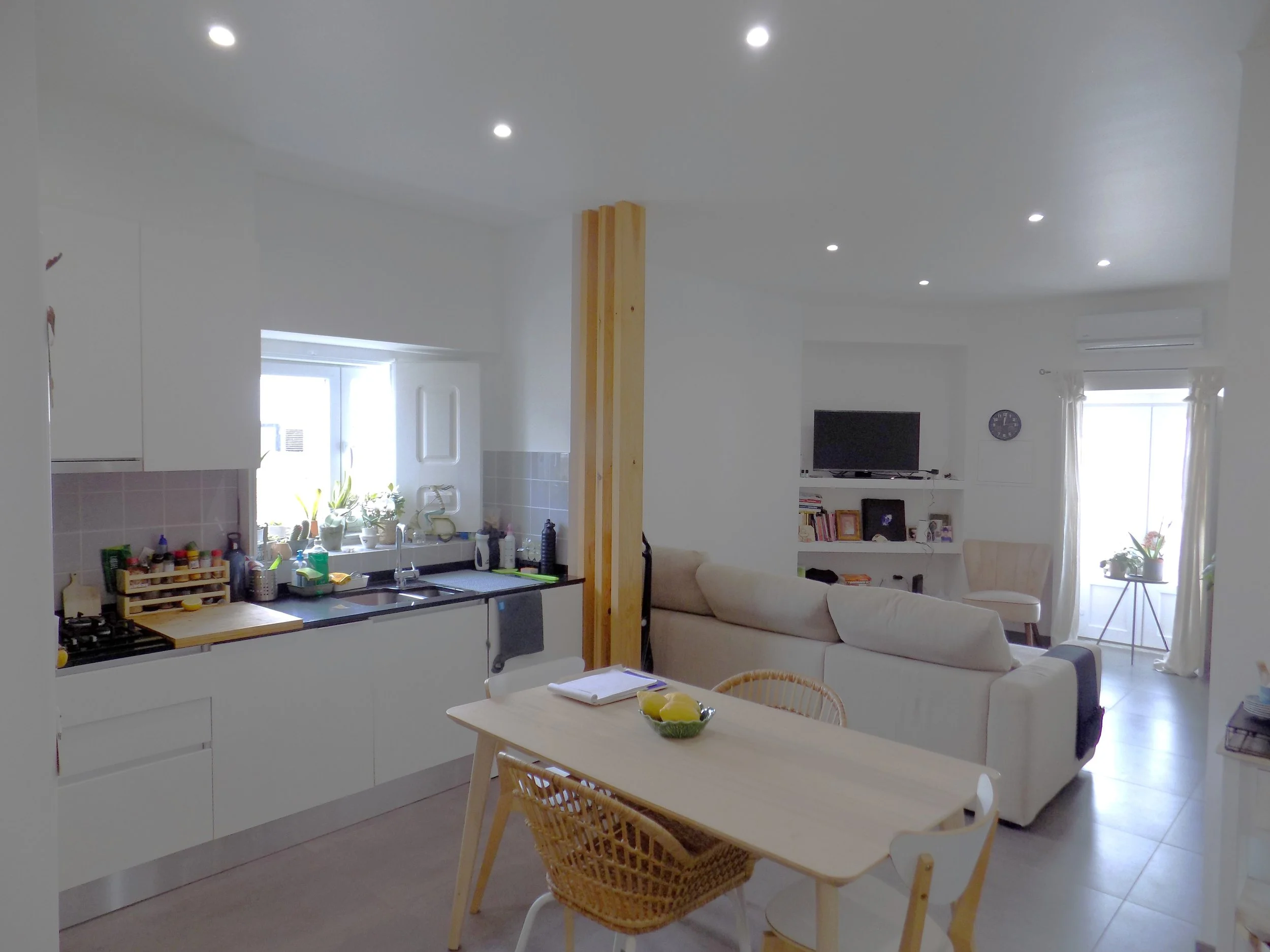 Esta casa é composta por uma sala de estar e cozinha em open space no rés-do-chão, 1 casa de banho completa e um quarto.